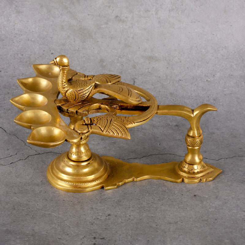 Perform authentic aarti ceremonies with our traditional brass 5-deep aarti lamp, designed for comprehensive ritual illumination and religious worship. This sacred ceremonial lamp combines the divine properties of brass with classical five-flame design to create perfect lighting for elaborate aarti rituals and festival celebrations. The five-flame configuration represents the five elements and provides complete spiritual illumination during worship ceremonies and religious observances. Handcrafted by skilled artisans who understand the spiritual significance and functional requirements of traditional aarti lamp construction. The brass construction ensures durability while maintaining the purity essential for sacred lighting and ceremonial practices. Perfect for temple worship, home puja, and special religious occasions that require elaborate lighting ceremonies and divine illumination. The antimicrobial properties of brass maintain cleanliness while the elegant design serves both functional and ceremonial purposes in religious practices. This essential worship item represents the complete offering of light to the divine in Hindu traditions and temple ceremonies. Whether for daily aarti or festival celebrations, this brass 5-deep lamp brings authenticity and spiritual significance to ceremonial lighting rituals and worship practices.