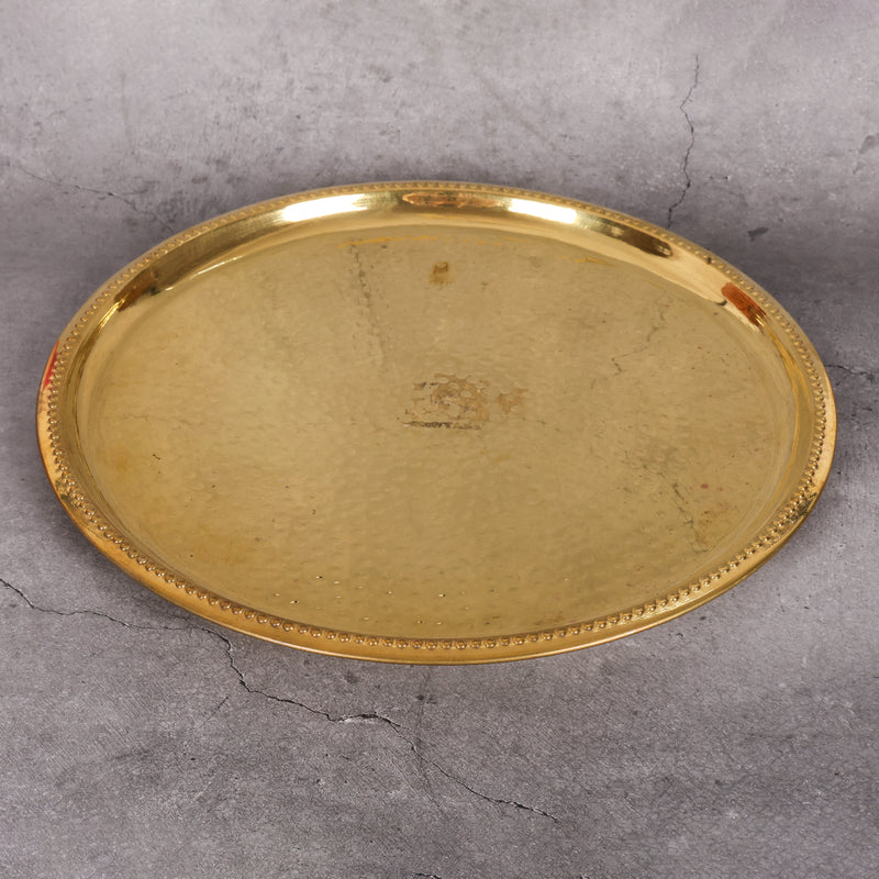 Elevate your dining experience with our exquisite brass hammered plate, featuring traditional hand-hammered texture that showcases centuries of Indian metalwork artistry. This authentic dining plate combines the antimicrobial properties of brass with beautiful hammered craftsmanship to create both functional tableware and artistic expression. The hand-hammered surface not only creates stunning visual appeal but also increases the plate's durability and provides better food contact for enhanced flavor. Handcrafted by skilled artisans using time-honored techniques, each plate displays unique hammering patterns that reflect traditional Indian craftsmanship. Perfect for serving traditional Indian meals, special occasions, and creating memorable dining presentations. The brass construction ensures hygienic food service while the elegant hammered finish makes every meal feel special. This versatile plate is ideal for both daily use and ceremonial dining, bringing authentic Indian elegance to your table. The natural properties of brass enhance the dining experience while the beautiful hammered texture adds character and sophistication. Whether for family meals or entertaining guests, this brass hammered plate transforms ordinary dining into extraordinary cultural experiences.