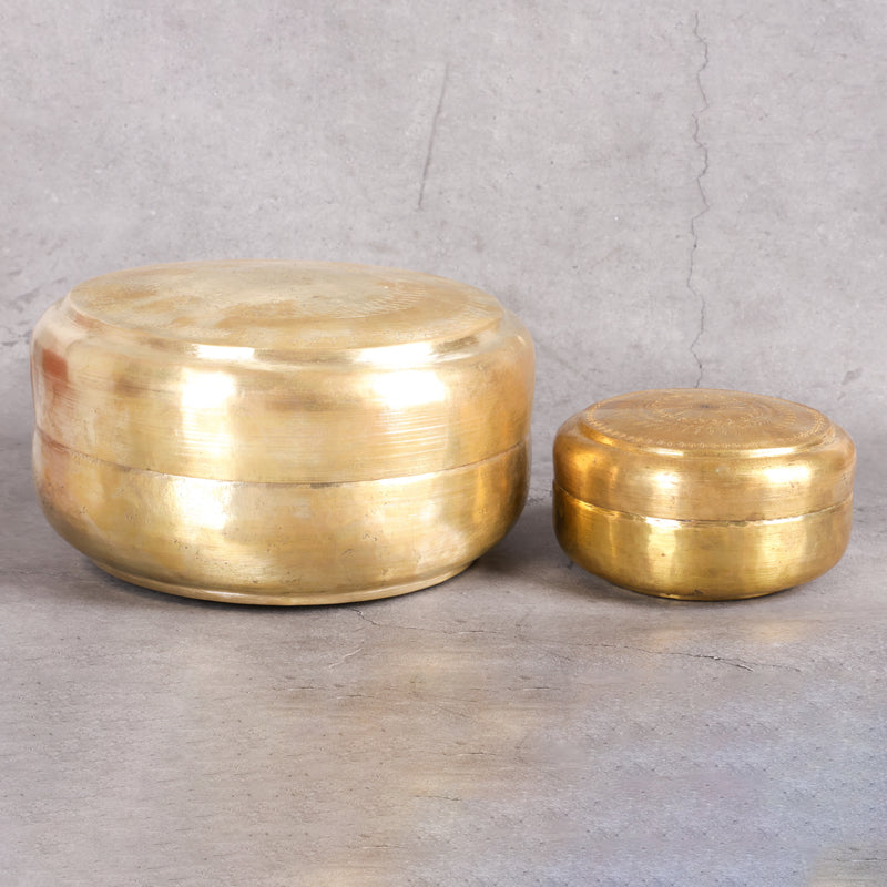 Experience authentic Indian dining with our traditional brass katordan, a complete serving set designed for elegant meal presentation. This classic collection of small serving bowls represents centuries of Indian dining tradition while meeting modern hospitality needs. Each katori is handcrafted from premium brass, offering antimicrobial properties that ensure hygienic food service. The set is perfect for serving dal, sabzi, raita, and various Indian accompaniments in traditional style. The uniform size and elegant finish create a cohesive table presentation while the durable brass construction ensures lasting beauty. These versatile serving bowls are ideal for portion control and authentic Indian thali presentations. The natural properties of brass enhance the dining experience while maintaining food quality. Each piece develops a beautiful patina over time, adding character and authenticity. Whether for daily use or special occasions, this katordan set brings traditional Indian elegance to every meal.